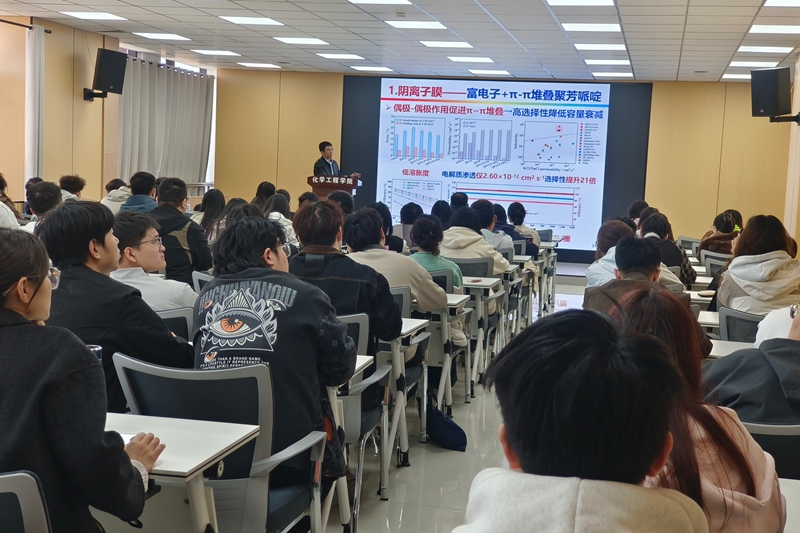 作题为“离子膜设计及新能源应用研究”的学术报告。报告由副院长李贞玉主持,院长高光辉、部分骨干教师和研究生代表现场聆听了报告。