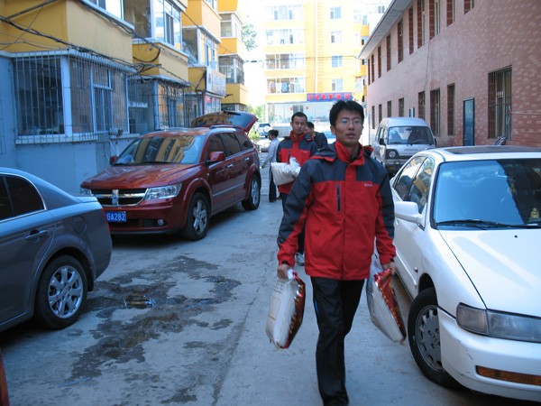 党委将慰问品大米、白面和豆油送到东田社区,分发到十户特困户中。